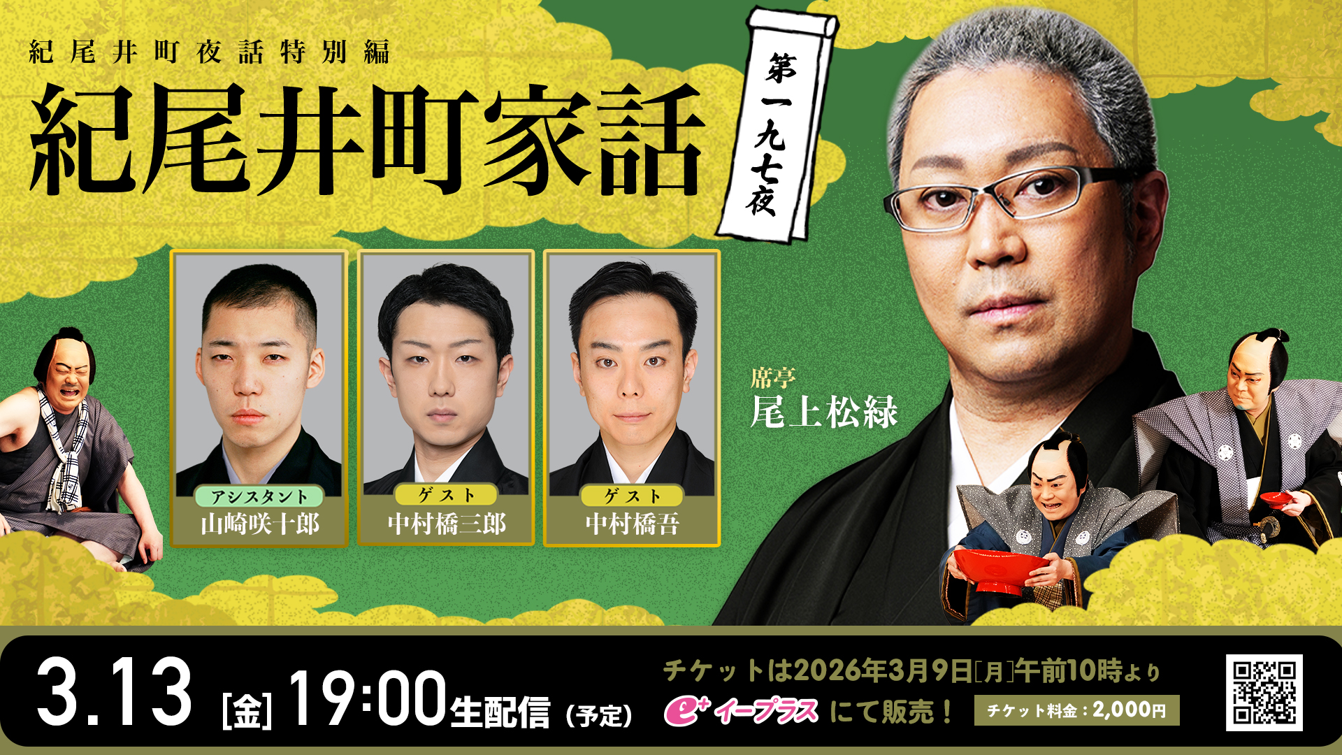 席亭:尾上松緑 ゲスト:松本幸四郎、片岡愛之助、中村獅童、市川中車 ※市川中車は舞台出演のため、途中参加となります。予めご了承ください