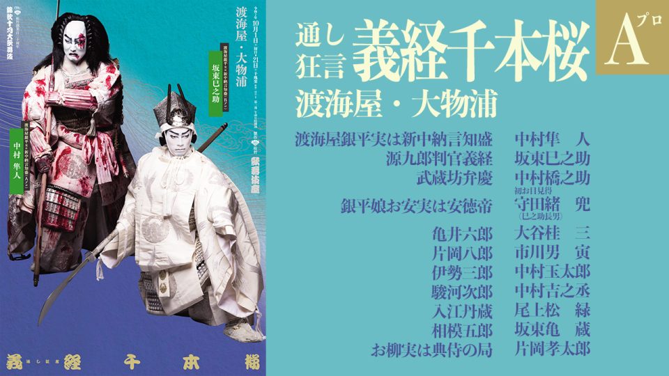 【配役】 海屋銀平実は新中納言知盛 = 中村隼人 源九郎判官義経 = 坂東巳之助 武蔵坊弁慶 = 中村橋之助 銀平娘お安実は安徳帝 = 初お目見得 守田緒兜(巳之助長男) 亀井六郎 = 大谷