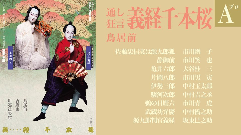 【配役】 佐藤忠信/忠信実は源九郎狐 = 市川團子 静御前 = 坂東新悟 逸見藤太 = 市川猿弥 亀井六郎 = 市川青虎 駿河次郎 = 市川右近 川連法眼 = 市川寿猿 飛鳥 = 中村東