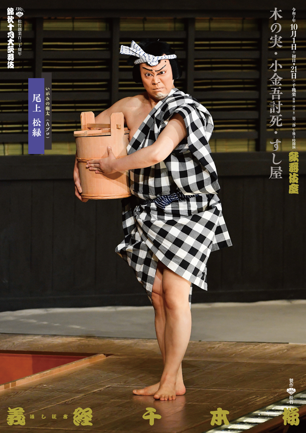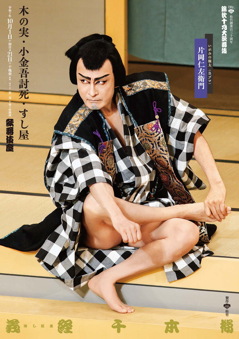 第二部は、運命に翻弄される庶民の哀切、親子の情と葛藤が心に沁みる「木の実・小金吾討死・すし屋」。Aプロでは、平成31(2019)年2月歌舞伎座での父・初世尾上辰之助三十三回忌追善狂言として勤め好評を博した尾上松緑が、Bプロでは、当り役として演じ続けてきた仁左衛門が、無頼漢ながら愛嬌を併せ持つ主人公・いがみの権太を勤めます。公開されたビジュアルは、いずれも「すし屋」の舞台写真より、ある決意を秘める権太の姿から緊張感と色気が漂います。