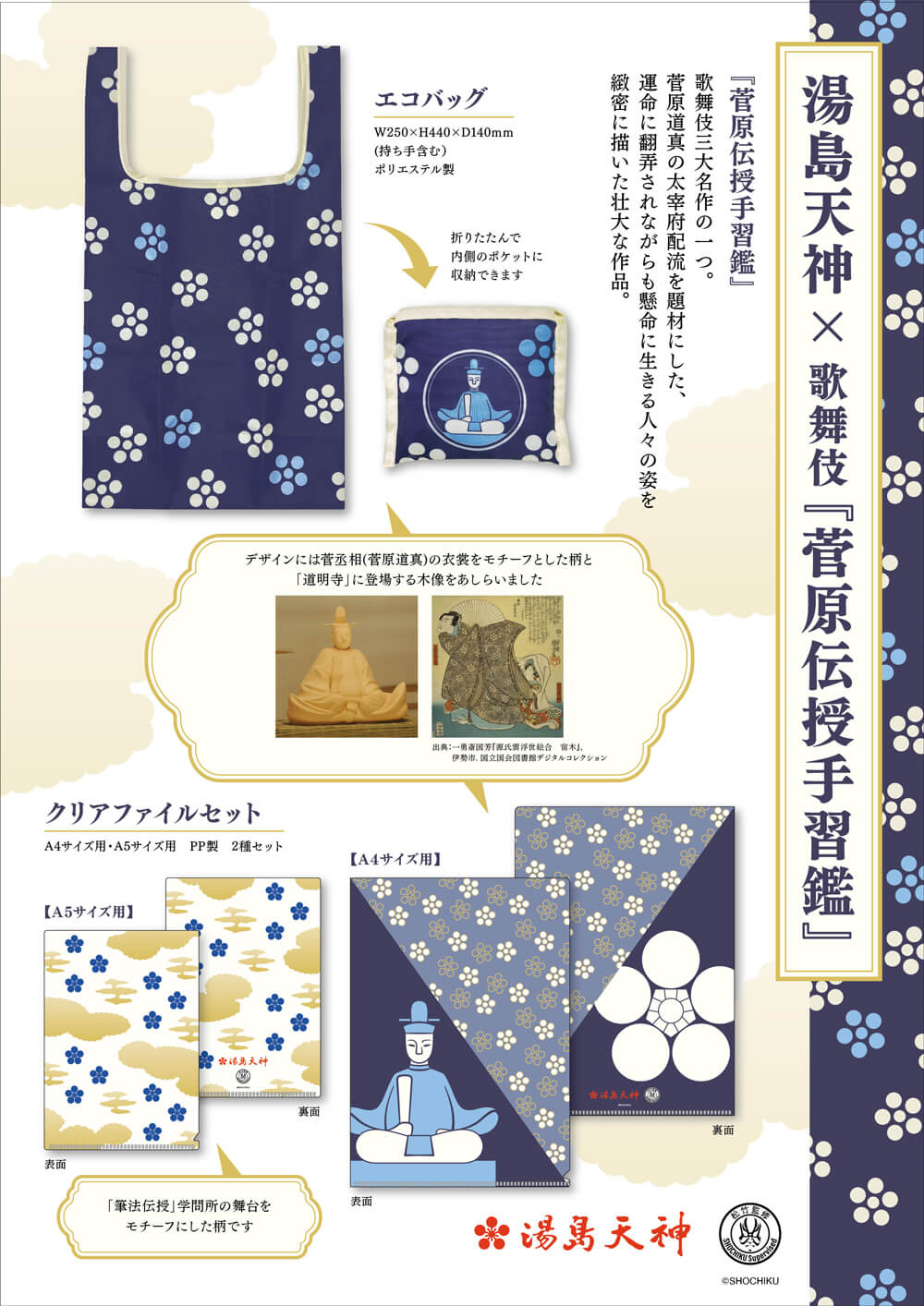 湯島天満宮で、歌舞伎『菅原伝授手習鑑』クリアファイルセット、エコバックが登場