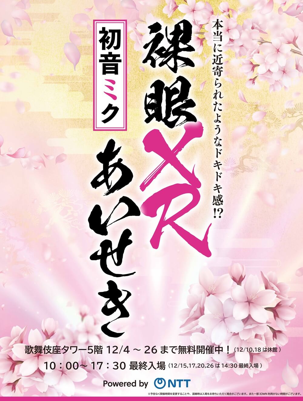 2025年12月4日(木)~12月26日(金)、歌舞伎座タワー5階の歌舞伎座ギャラリーで、「裸眼XRあいせき with 初音ミク」が開催されます。