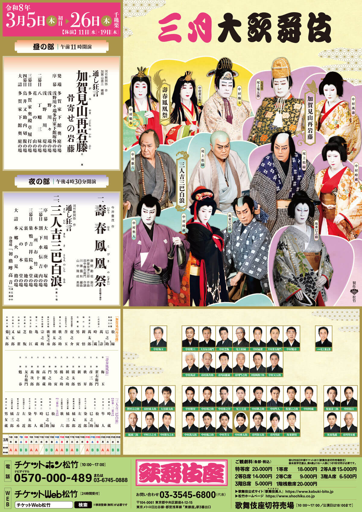 歌舞伎座 販売営業課 03-3545-6855(10:00~18:00/休演日・休館日10:00~17:00)