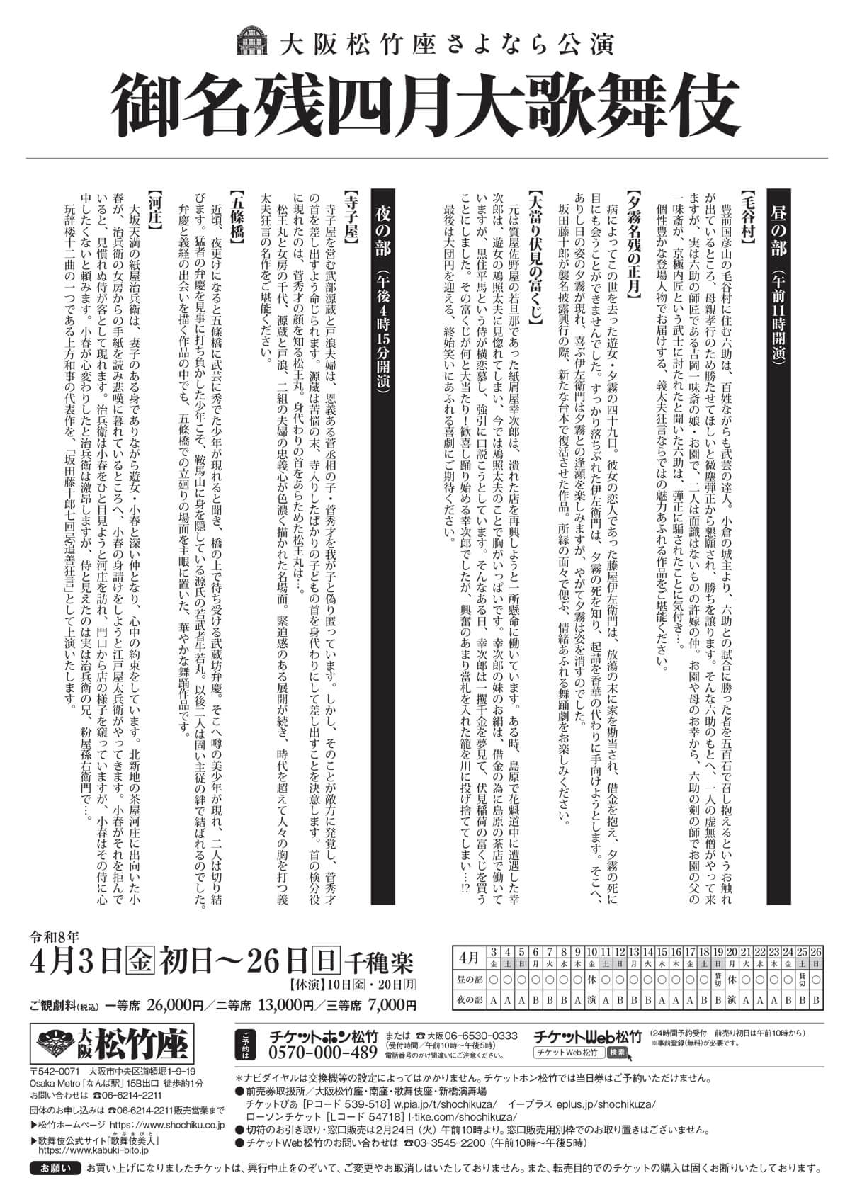 公演日、上演時間、出演者、演目などが急遽予定変更となる場合がございます。あらかじめご了承ください
