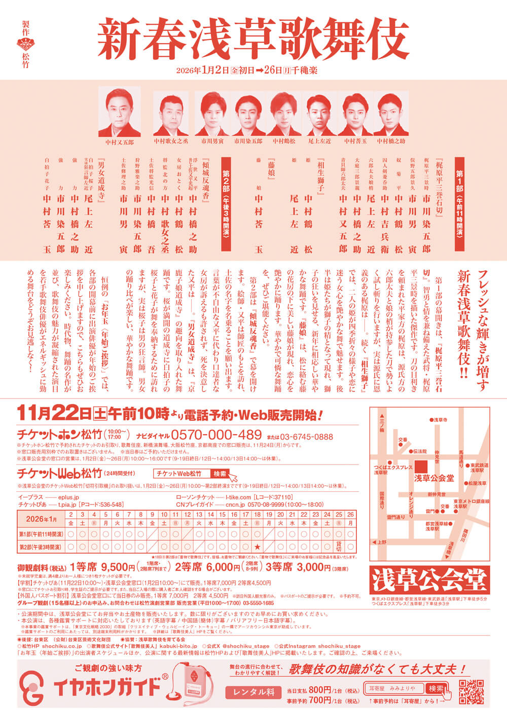 ※浅草公会堂での窓口販売は、1月2日(金)~1月26日(月)の期間、10:00~16:00(1月9日、19日休業、12日~14:00、13日14:00~休業)