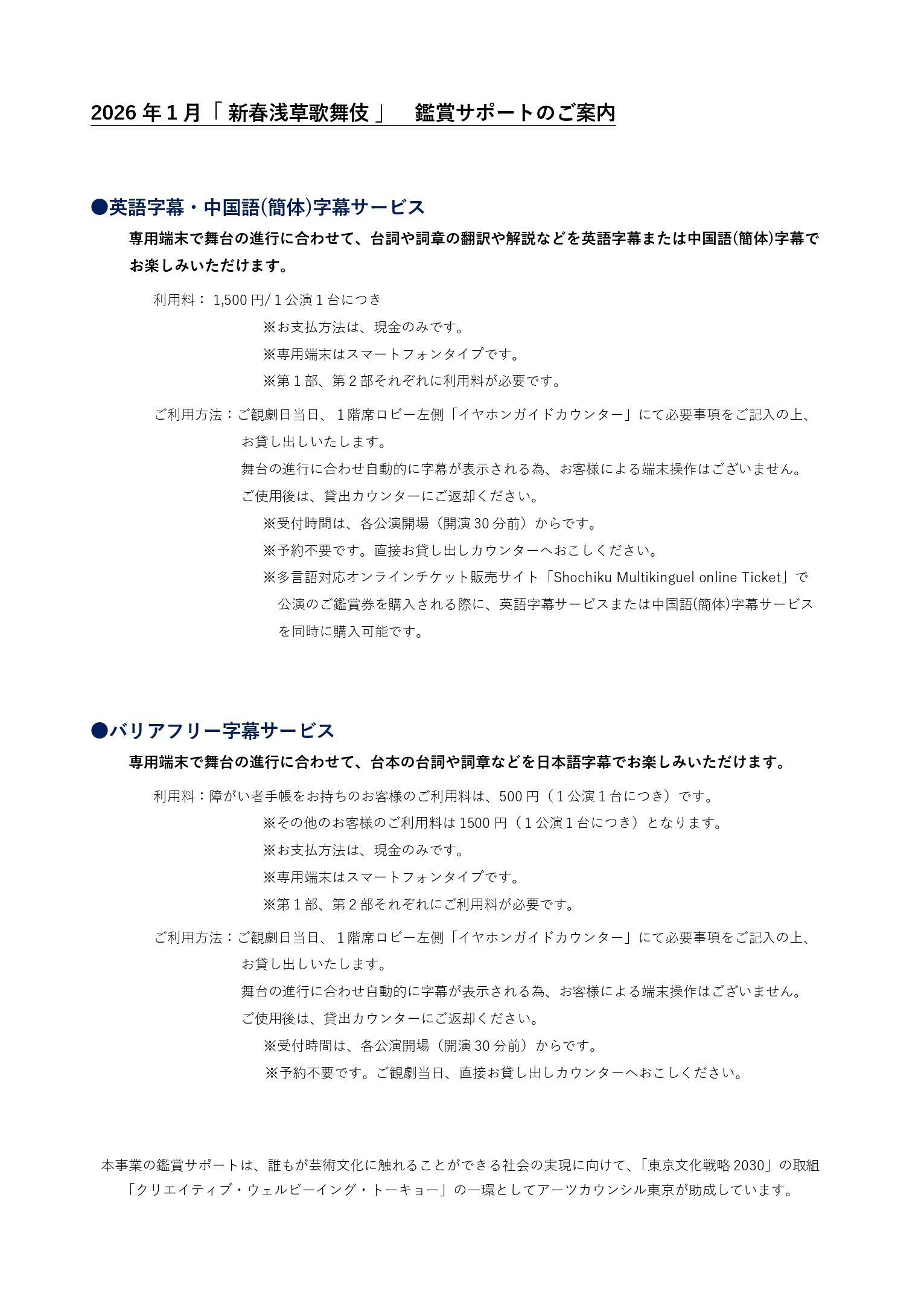 本公演は、各種鑑賞サポートに対応しております(英語字幕/中国語(簡体)字幕/バリアフリー日本語字幕)